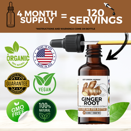 Organic Ginger Root (Zingiber officinale), Organic Vegetable Glycerin, Purified Water